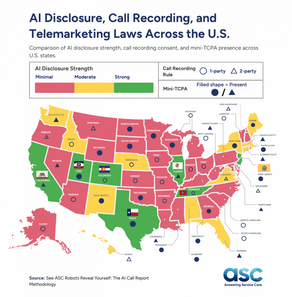 Answering Service Care is calling for mandatory AI disclosure in their new petition. Modeled on call recording and privacy laws, clear disclosure standards would protect consumers and give small businesses consistency instead of compliance guesswork.